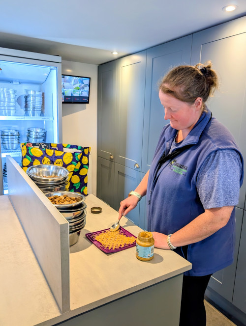 1. Enough food for their stay, with their own scoop or better still bagged into meals.